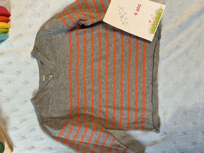 pull léger col V gris rayé orange okaidi 4 ans - photo numéro 4