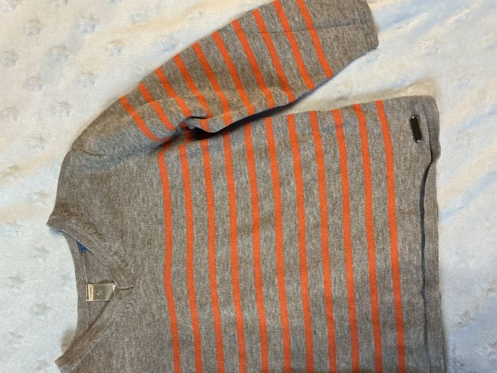 pull léger col V gris rayé orange okaidi 4 ans - photo numéro 1