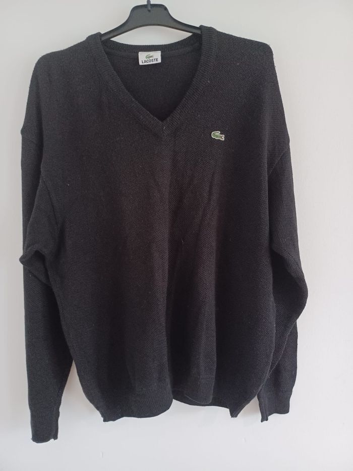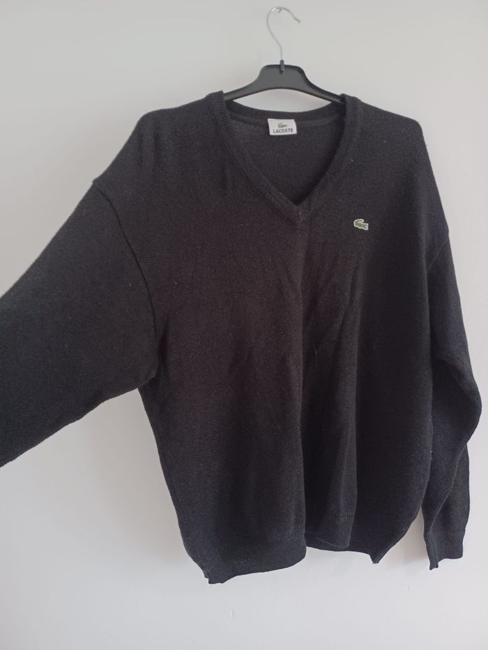 Pull Lacoste homme noir col V – taille 7 (XXL) – vintage / bon état - photo numéro 1