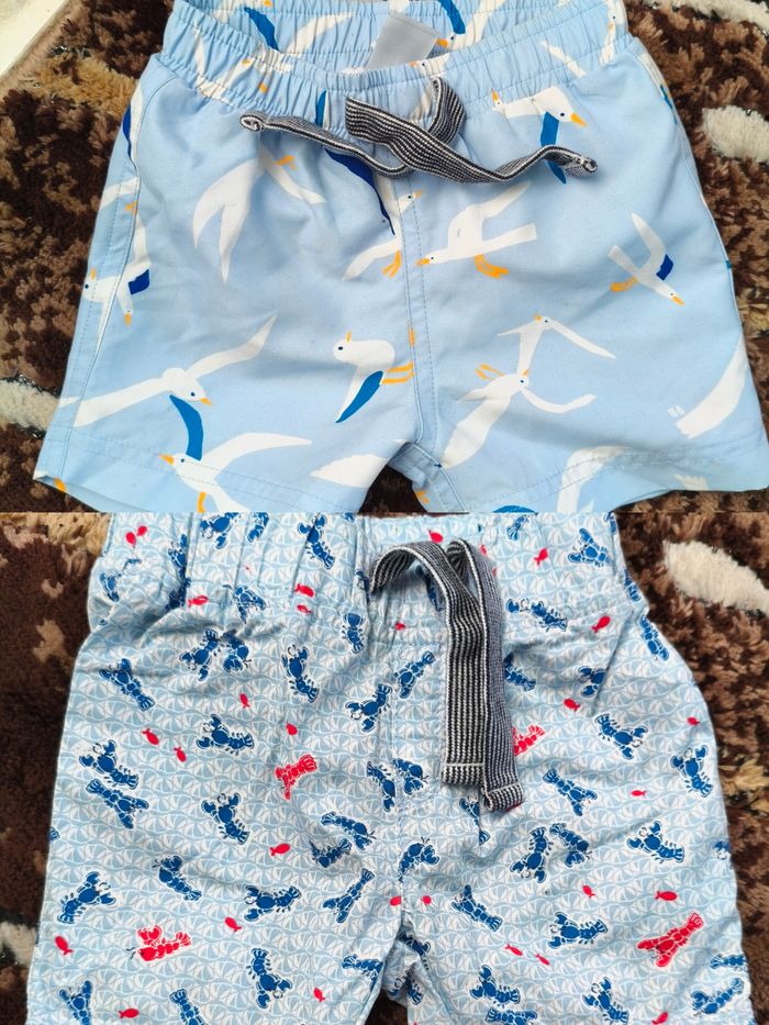 1 short bleu clair à motifs mouettes 1 short bleu à motifs homards 🎨 Couleurs : tons de bleu, motifs ludiques 🩳 Taille : à préciser (élastique à la taille avec cordon de serrage) 📦 État : bon état général, portés, sans trous ni taches 🌞 Confort : légers, séchage rapide, agréables à porter Idéal pour les vacances ou pour avoir un short de rechange à petit prix.