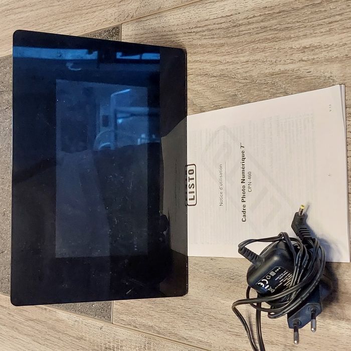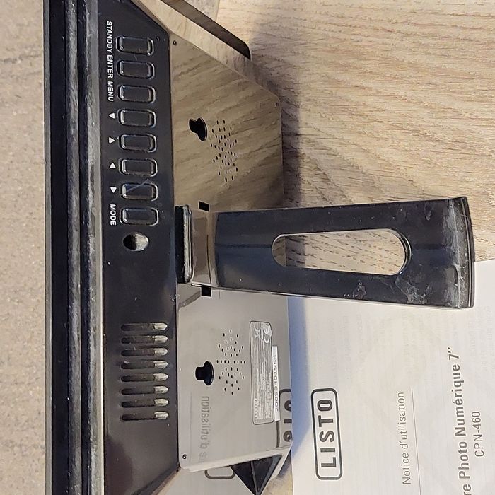 cadre photo numérique de la marque Listo, modèle CPN-460, avec un écran de 7 pouces. Idéal pour afficher vos photos préférées en diaporama, il est simple d’utilisation et pratique pour la maison ou le bureau. Écran LCD 7 pouces-Lecture via carte SD ou clé USB-Alimentation secteur-dimensions 23-17-3 cm Très facile à configurer État : Très bon état , avec cable secteur et la notice- nota : 2 fines marques mais en aucun cas ce la ne gêne la lecture des photos - sans la boite