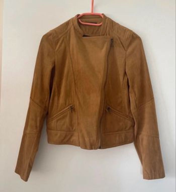 Coupe perfecto Matière effet daim Excellent état car peu porté Deux poches zippée s à l’avant 51 cm de longueur dans le dos