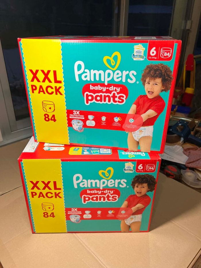 Code -15€ : CHOCOLAT30 Jusqu’au : 06/02/26 Lot : 2 cartons neufs. Variété : Pampers baby dry en PANTS. Taille 6 : Bébé 13 - 18 kg Quantité : 168 (2*84) PANTS #couche #pampers #couchepampers #coucheharmonie #harmonie #premiumprotection #babydry #couchepants #couchetaille6
