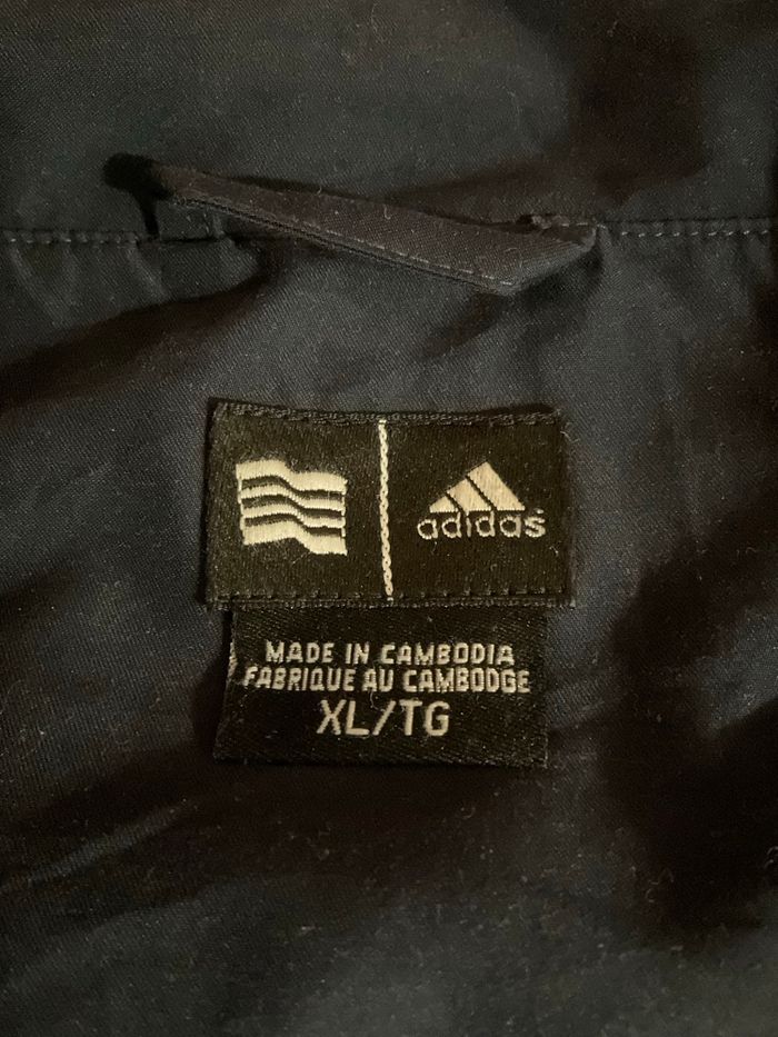 Taille XL Très bon état (légère tâche derrière la poche droite) voir photo Veste doublure 100% polaire bleu marine pour homme Adidas Climashell Veste chaude Deux poches à zip pour les mains Toutes les fermetures éclair fonctionnent parfaitement Logo brodé Composition : polyester Aisselle à aisselle : 71cm Manche : 85cm de la base du cou au bout de manche Longueur : 78cm Les dimensions sont également présentes en photo Vêtement lavé Envoi rapide et soigné #adidas #chaude #blouson #veste #montagne #hiver #automne #jacket #vintage #navyblue