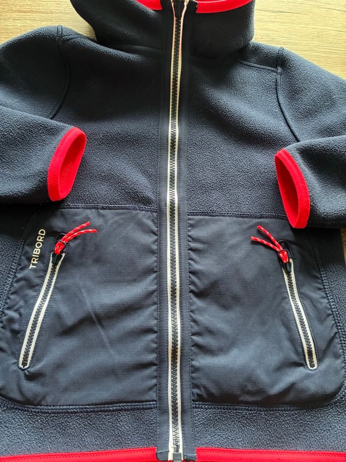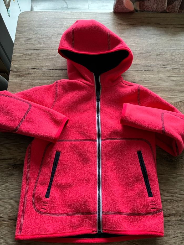 Veste polaire réversible, un côté bleu marine et un côté rose fluo. Taille 8 ans, veste chaude. En parfait état de chez décathlon