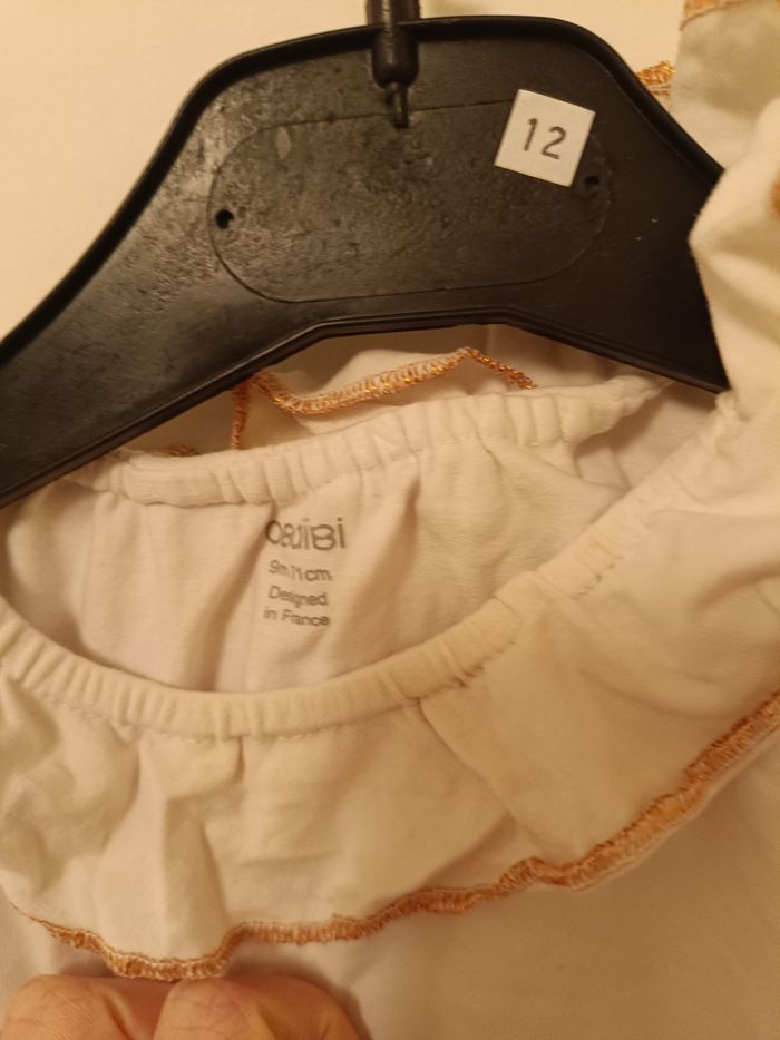 T-shirt blanc col volanté doré Obaïbi - 9 mois - photo numéro 3