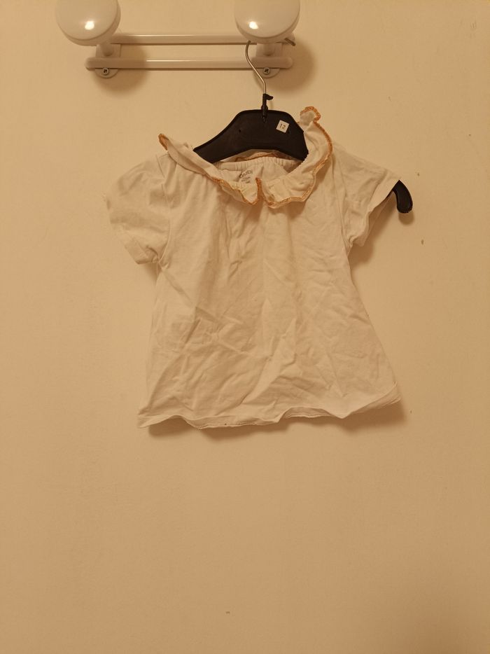 T-shirt blanc col volanté doré Obaïbi - 9 mois - photo numéro 1