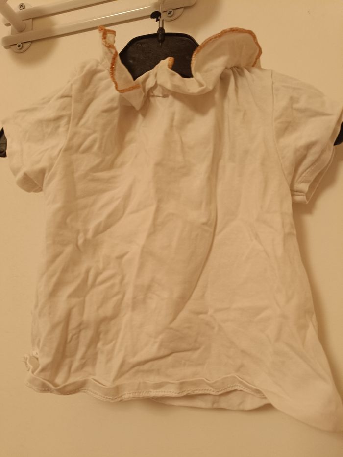 T-shirt blanc col volanté doré Obaïbi - 9 mois - photo numéro 2