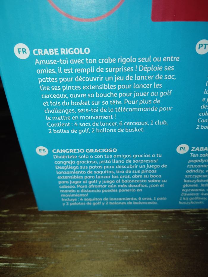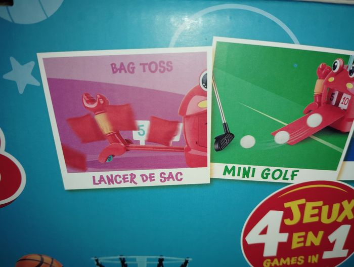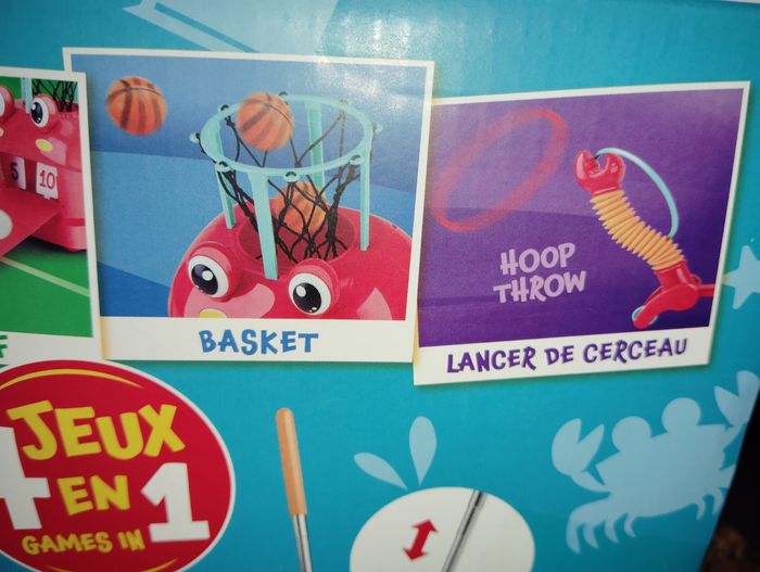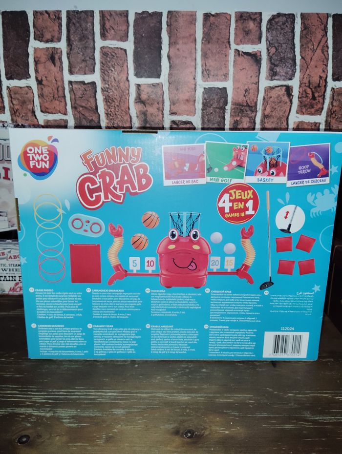 Crabe rigolo 4 activités, mini golf, lancer de sac, basket et lancer de cerceau, boîte neuve scellée.