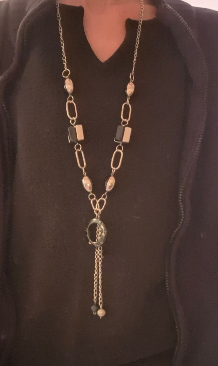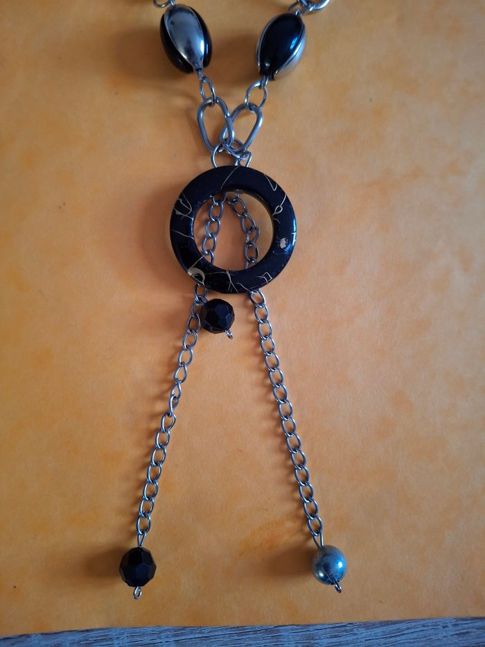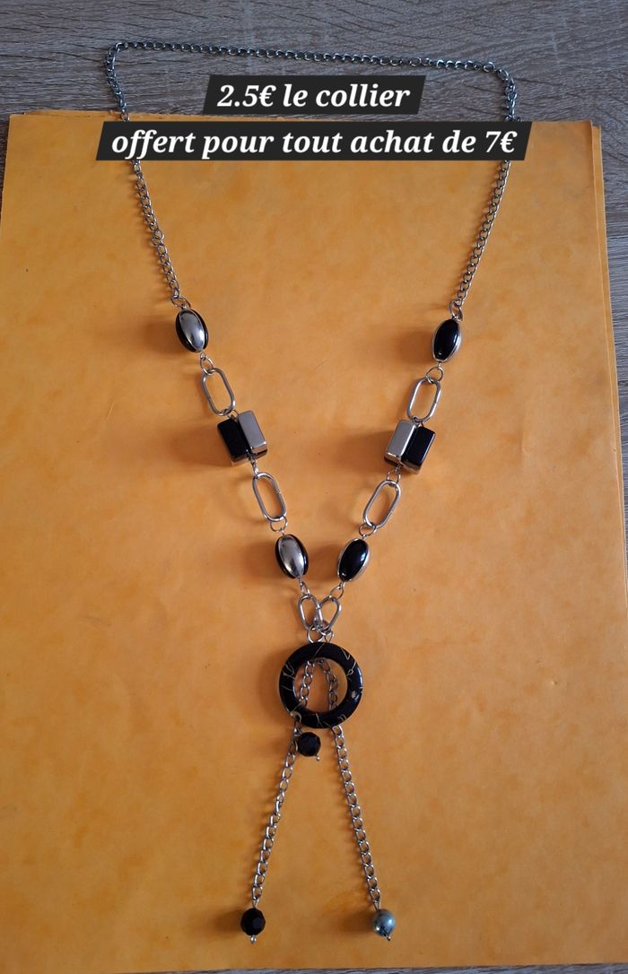 Collier argenté perles noires et blanche 2.5€ ou offert pour tout achat de 7€