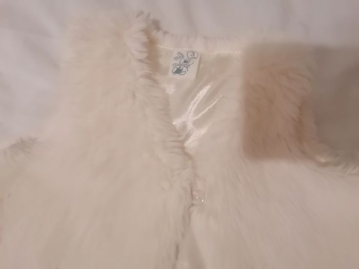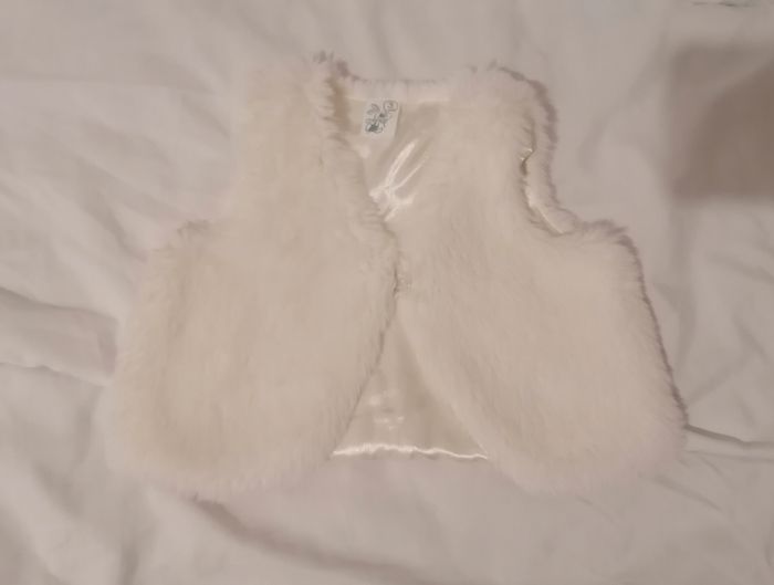 Gilet sans manches blanc, taille 3 mois, marque Super U, en très bon état.