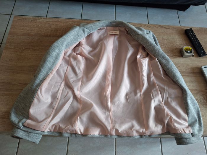 Blazer souple gris clair Doublure rose Pas etiquette de taille