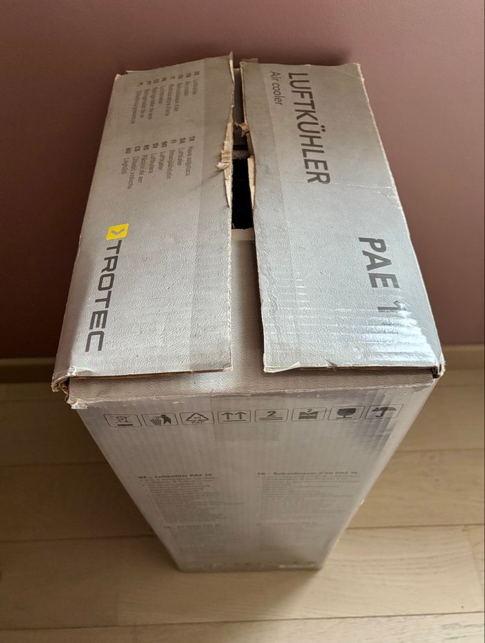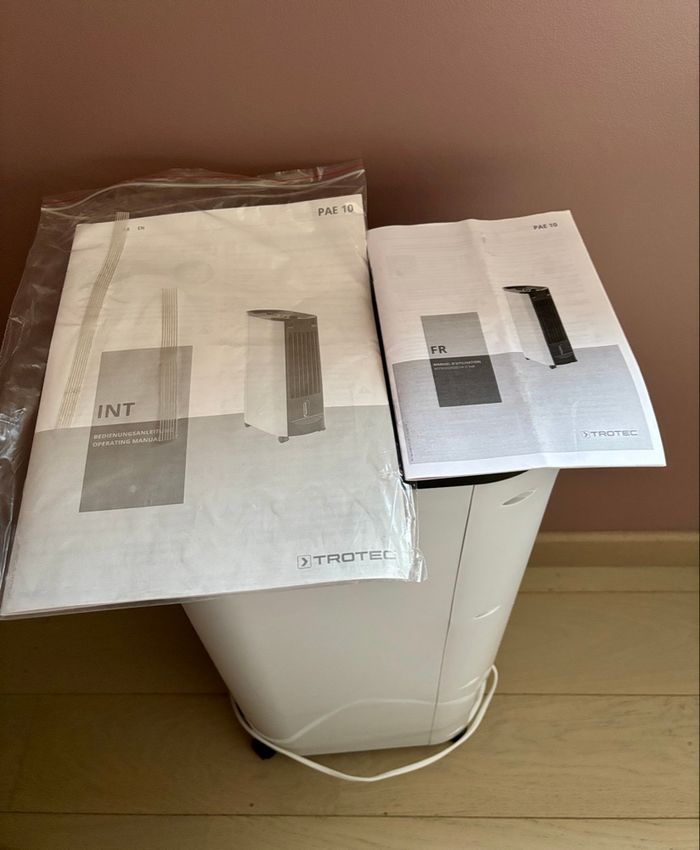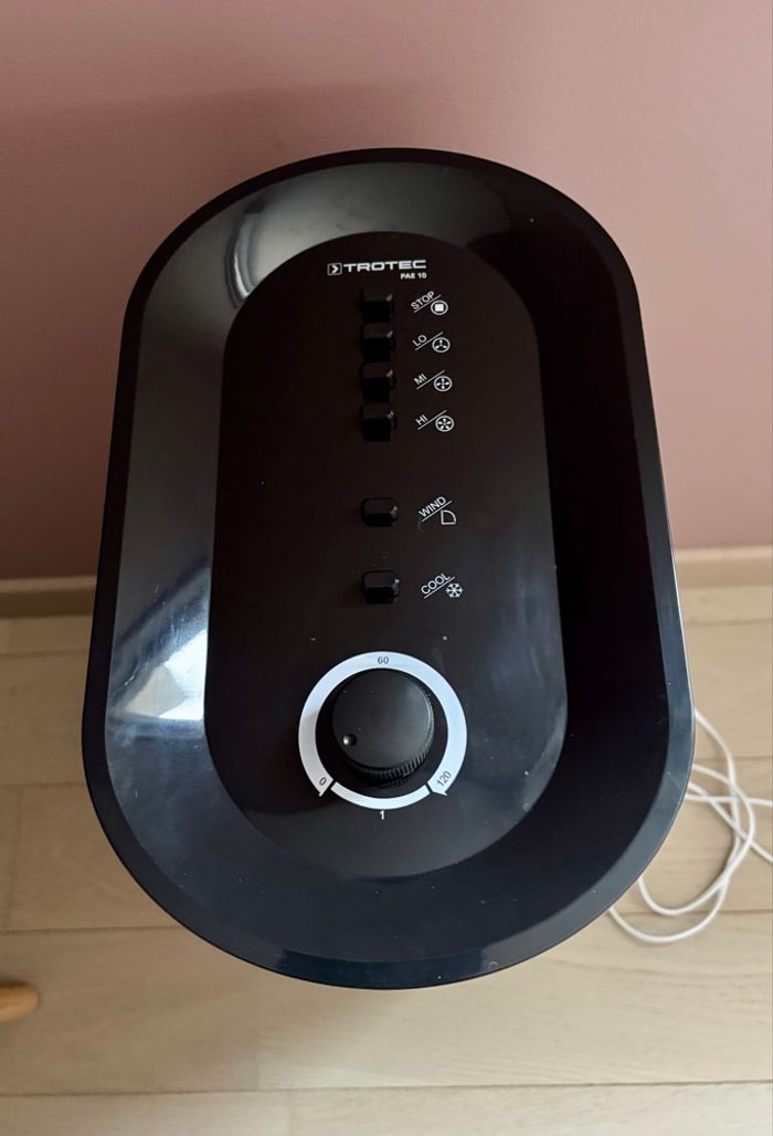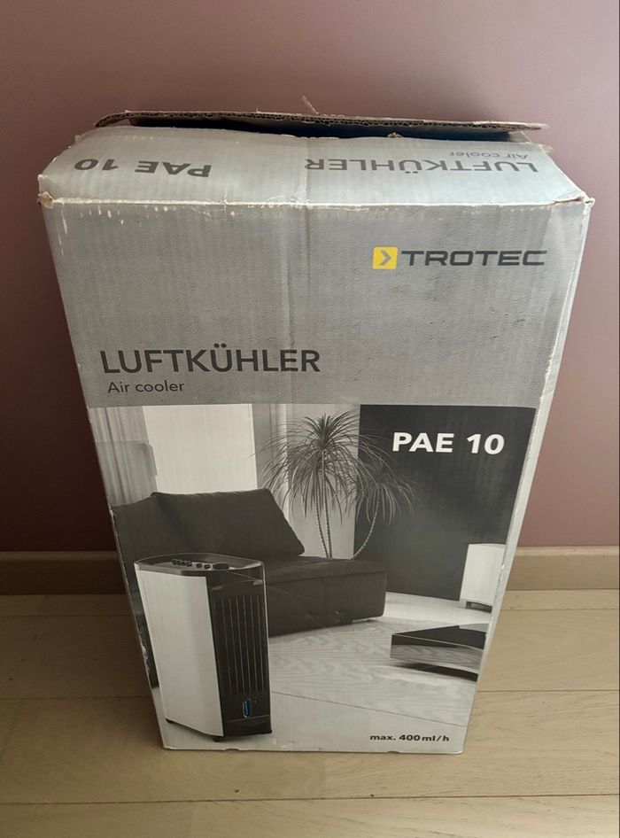 Ventilateur rafraîchisseur d'air Trotec PAE 10 qui a très peut servi. Ce refroidisseur 3 en 1, refroidit, ventile et rafraichi l'air en fonction des besoins grâce à ses 3 vitesses de ventilation et la possibilité de régler l'orientation de l'air. Utile en été comme en hiver il dispose d'un réservoir de 4 litres et ne consomme que 70W pour un débit de 400 m³/h. - Type de produit : Ventilateur rafraîchisseur d'air - Marque : Trotec - Modèle : PAE 10 - Débit d'air max. : 400 m³/h. - Emballages et notices Très bon état général. N'hésitez pas à me contacter pour plus d'informations !