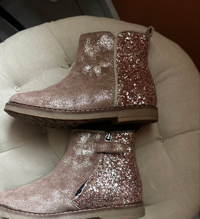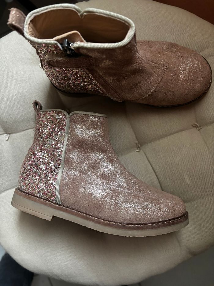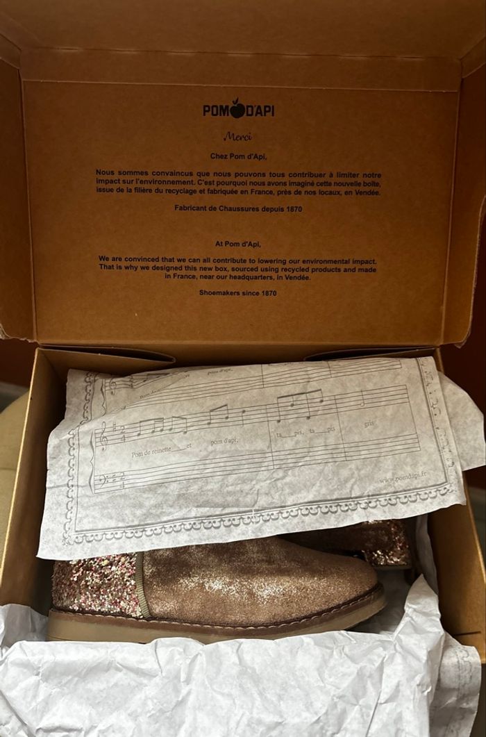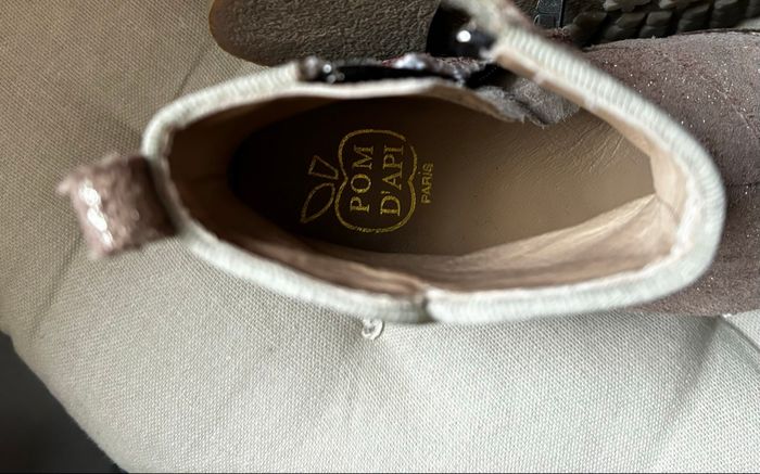 Bonjour, Je vend ces bottines Pom d’api trip back, pas vraiment portées, rapidement trop petites. État niquel, pas de taches, pas de trou ni éraflée, fermeture niquel. Le dain ne rend jamais bien en photo.