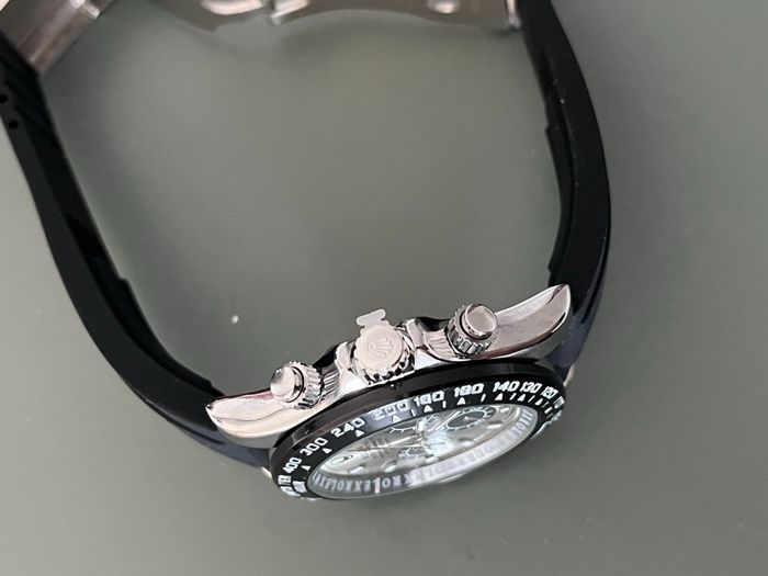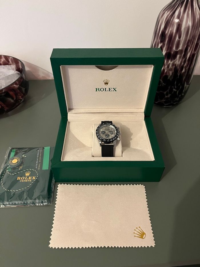 ✨ Montre de parfaite manufacture Couleur argent/ bracelet oysterflex/lunette chronographe pivotante/ boucle déployante avec sécurité / montre en acier ℹ️ la boîte affichée sur les photos n’est pas comprise dans le prix ( elle est en supplément) 💬 pour toute information n’hésitez pas à me contacter en message privée 🎁 pour l’achat d’une boîte = -10% sur la montre 🚚envoie sous 48h