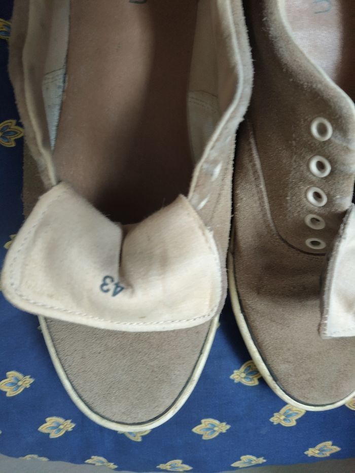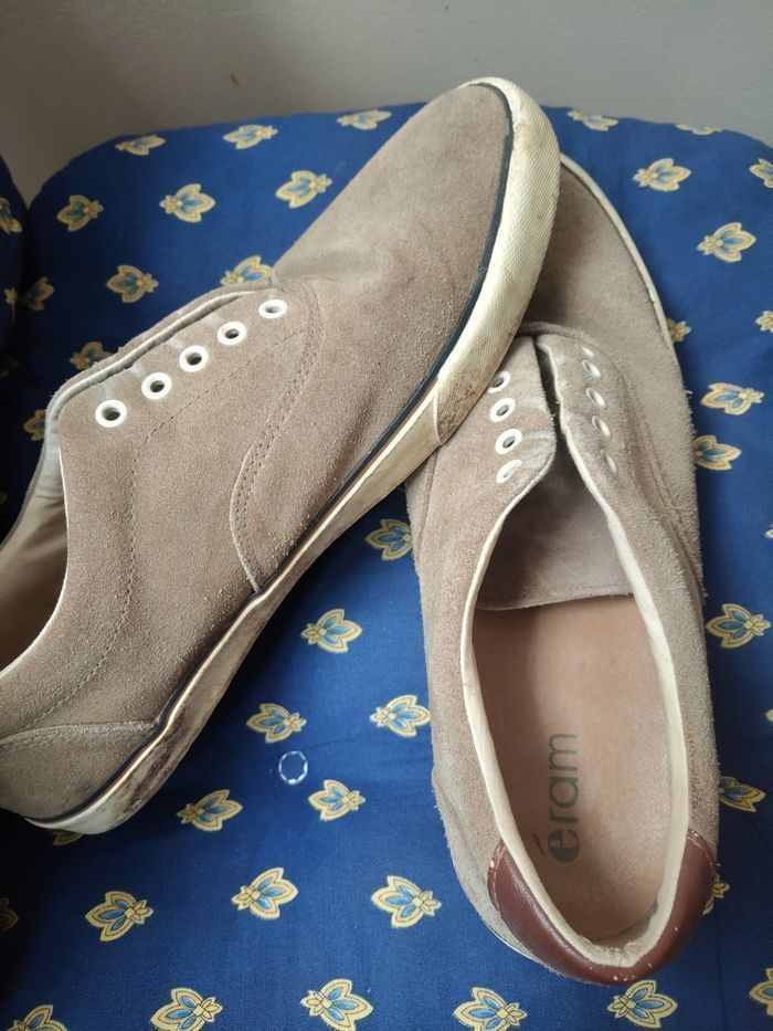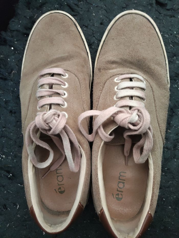 Tres belles chaussures à lacets sport, beige, en croûte de cuir, Marque ERAM, Pointure 43, doublées Manque les lacets d'où petit prix. Chaussures, derby, cuir, pointure 43, homme, sport, beige