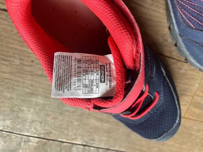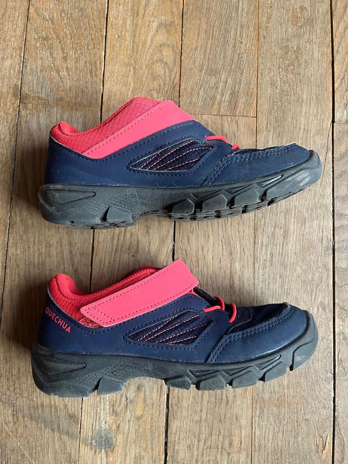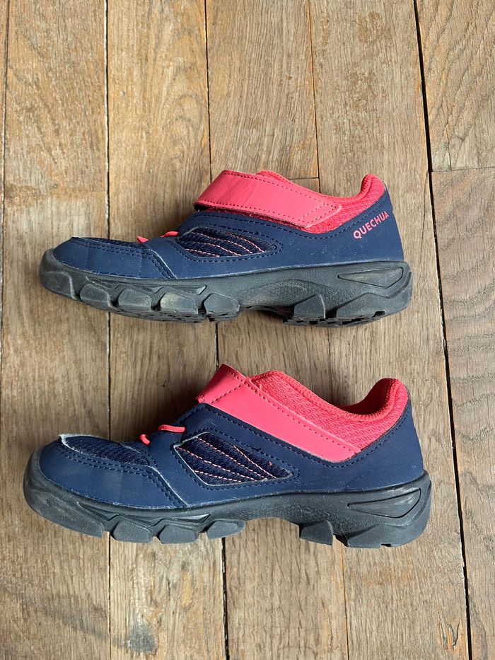 Chaussures de marche marine et rose, fermeture à scratch. Portées, très bon état
