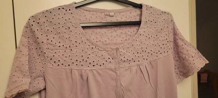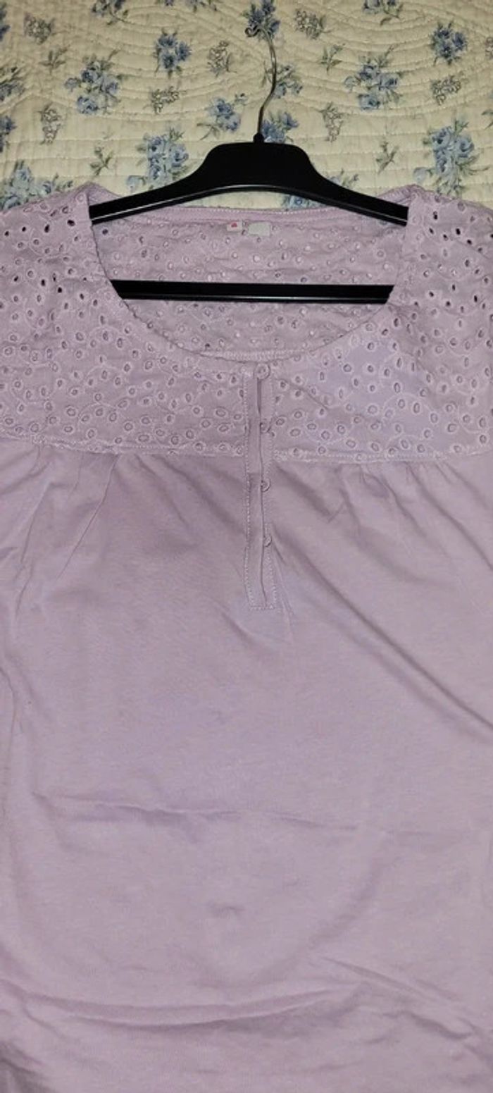 Chemise de nuit courte coton et broderie anglaise 34/36 Couleur lila Longueur 93 cm Largeur 47 cm 100% coton Neuve