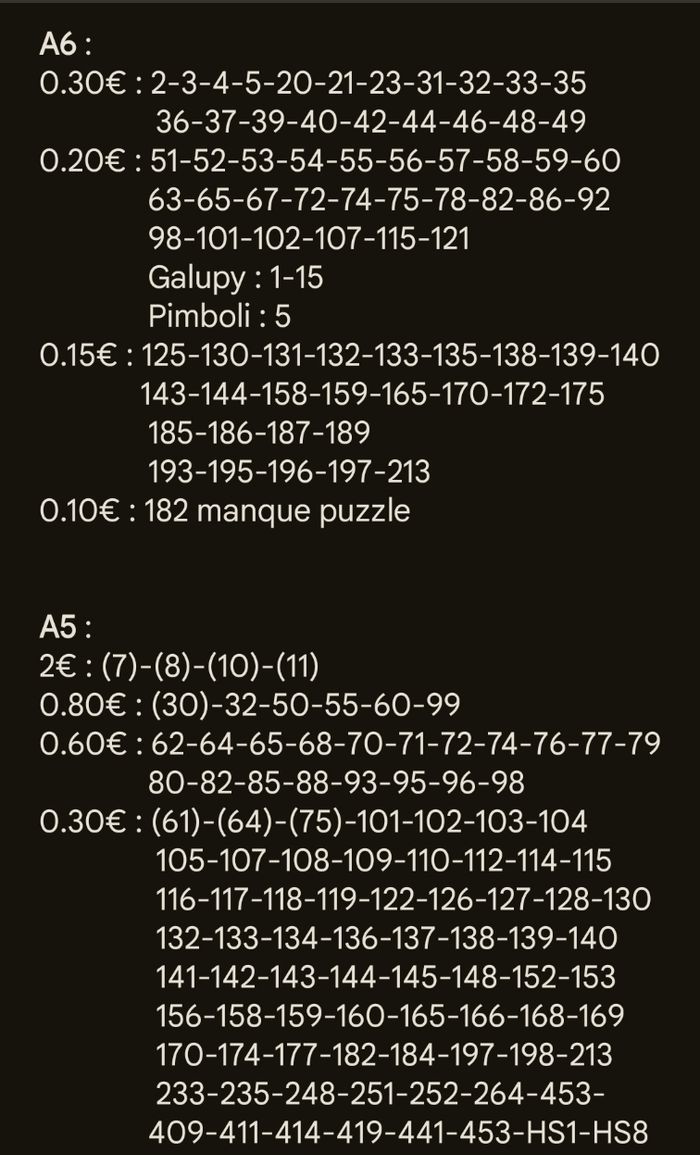 Lot de feuilles diddl à composer suivant vos manquantes 🐭 Feuilles sorties de blocs sauf els numéros entre () qui présentent des traces de manipulation. Maison non fumeur