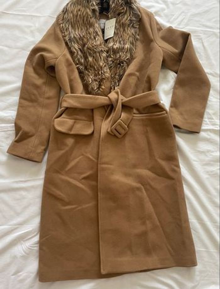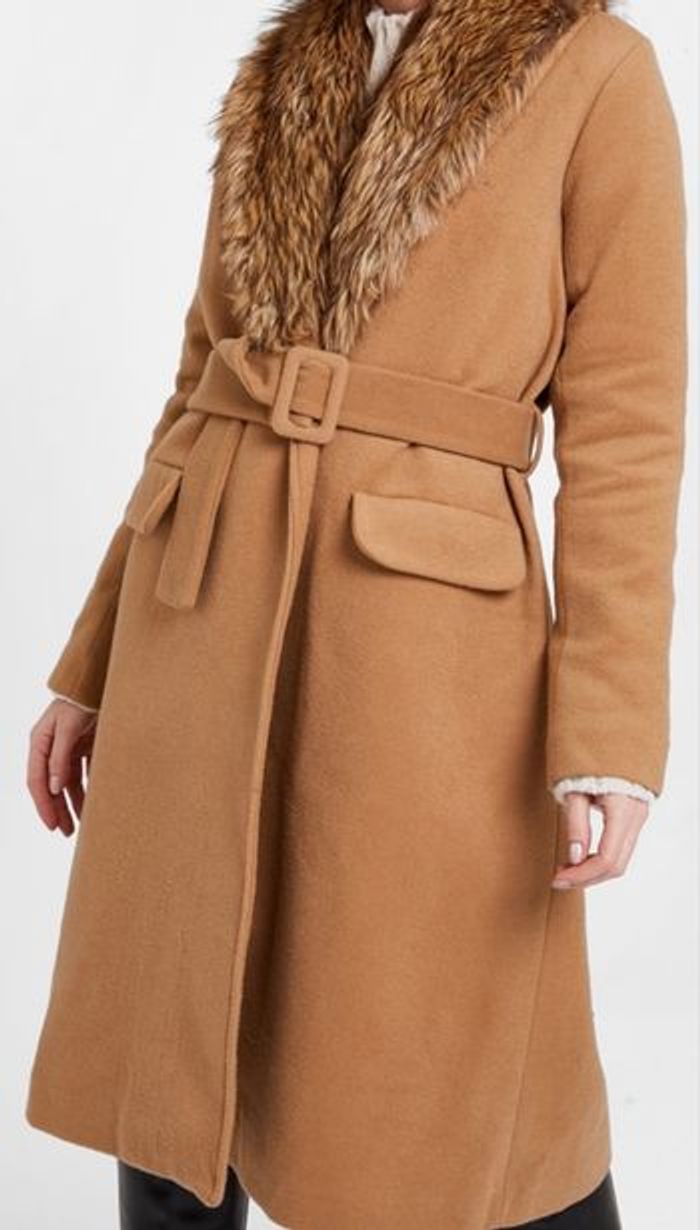 Manteau avec fourrure et lien à nouer