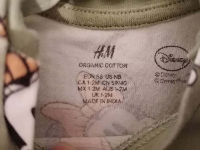 Ensemble bodie et son pantalon vert Disney, taille 1-2 mois, marque H&M, en bon état voir très bon état.