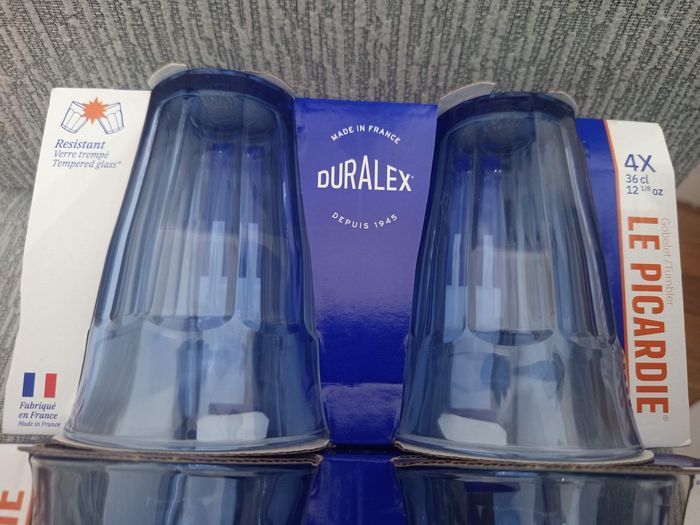 Lot de 4 verres Duralex Le Picardie – 36 cl – Bleu Description : Vends lot de 4 verres Duralex Le Picardie en verre bleu, capacité 36 cl (12 1/8 oz). Verres iconiques, robustes et élégants, en verre trempé – fabrication française 🇫🇷. Idéals pour l’eau, les sodas ou les boissons du quotidien. État : Neufs (encore dans leur emballage d’origine). Marque : Duralex Modèle : Le Picardie Capacité : 36 cl Quantité : 4 verres Couleur : Bleu 📦 Remise en main propre ou envoi possible. 💬 N’hésite pas à me contacter pour plus d’informations.
