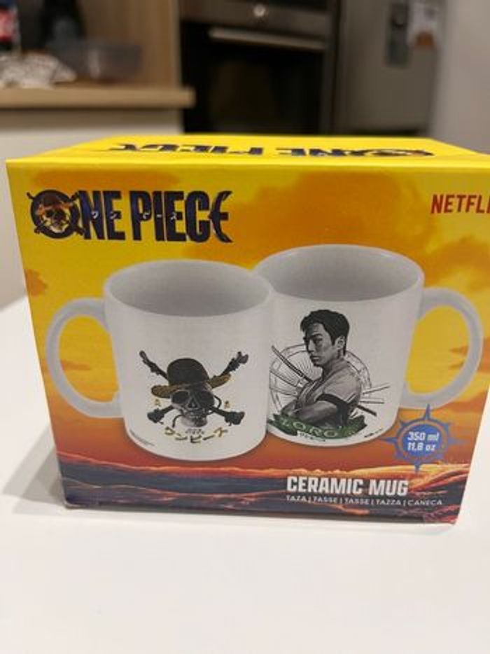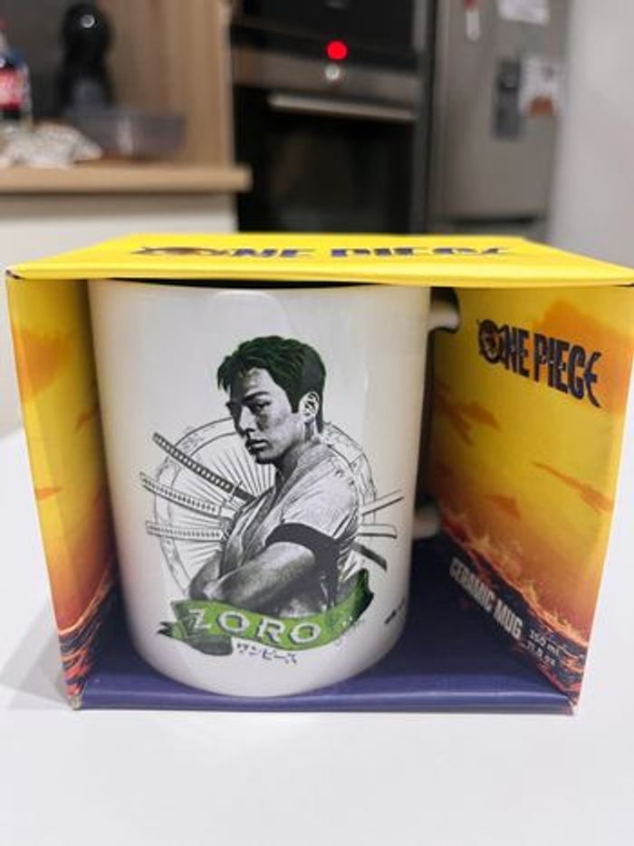 Vends mug du film Netflix « One Piece », personnage Zoro. Jamais ouvert. État neuf Reçu dans une box mystère Parfait pour fans collectionneurs