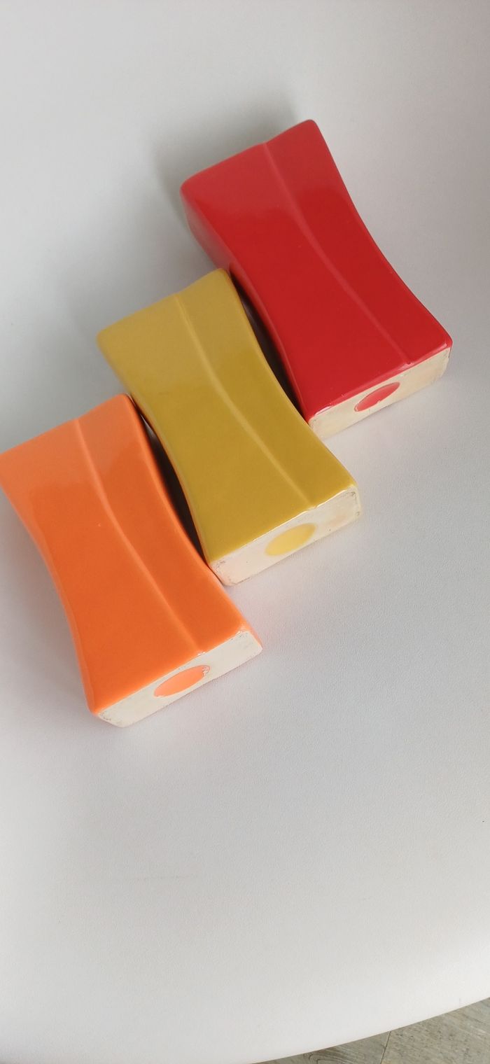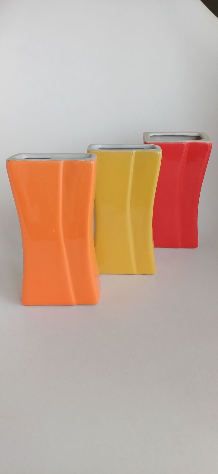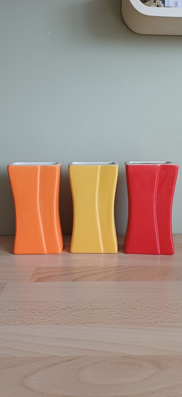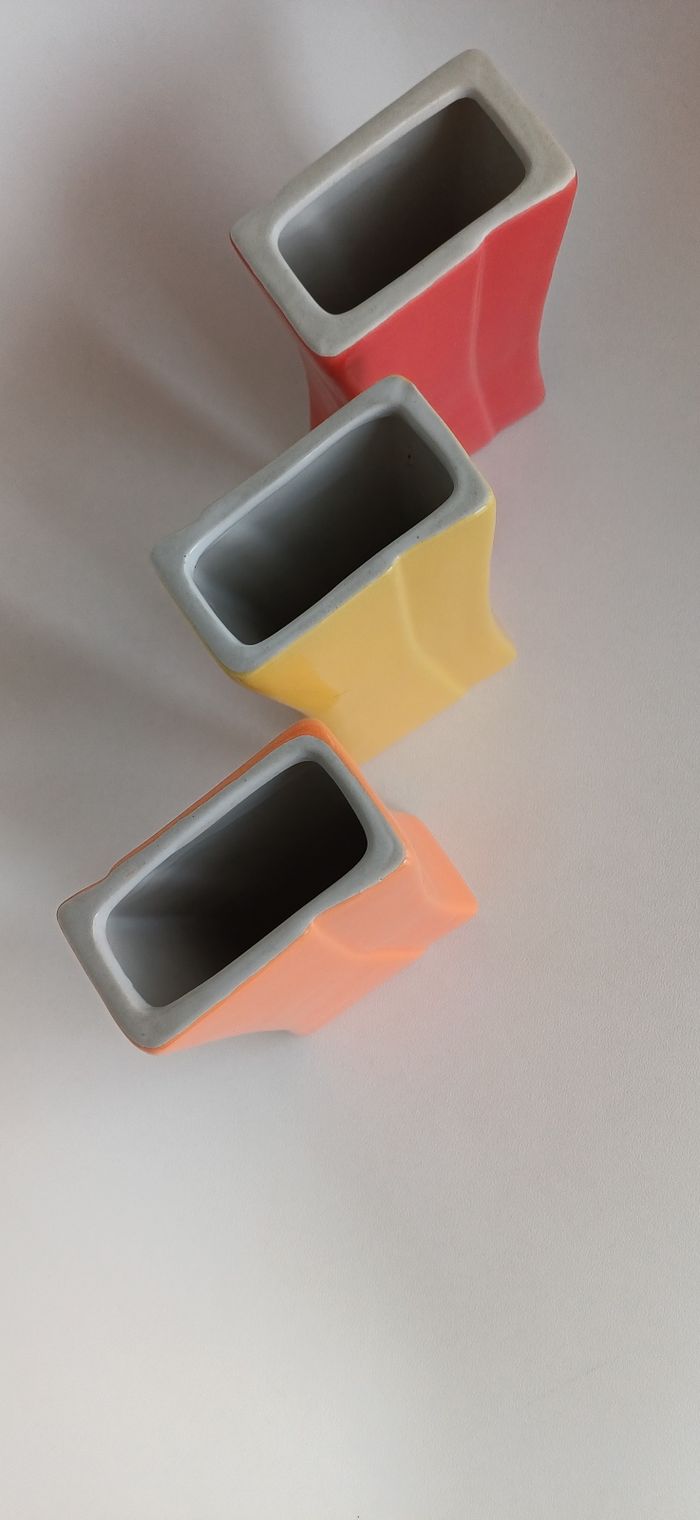 Ensemble de 3 pots ou vases années 90. Ils sont en céramique et n'ont pas d ébrechure . 15cm × 8cm × 4cm.