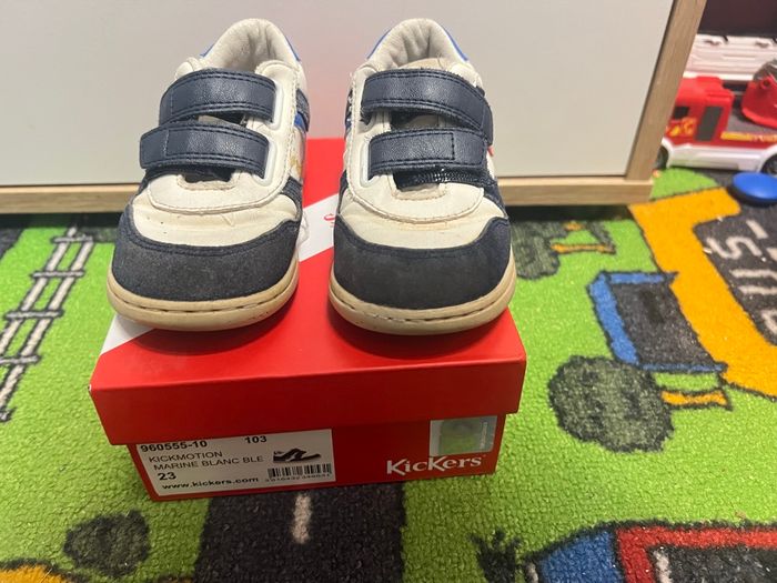 Basket à ouverture à scratch de la marque Kickers Bien usée - passé en machine avant photo ⚠️ présence de mousse polyuréthane sur une basket (voir dernière photo ⚠️ Taille 23