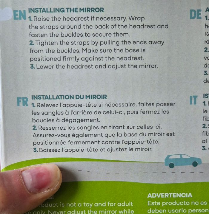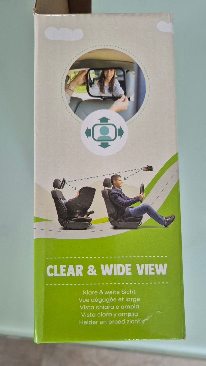 Grand miroir pour sécurité voiture. S'adapte à tout repose tête grâce aux sangles le le miroir povote a notre guise.