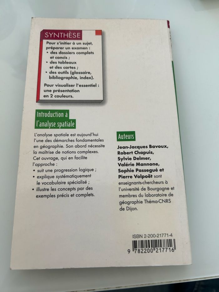 Livre synthèse introduction à l’analyse spatiale jean Jacques bavoux