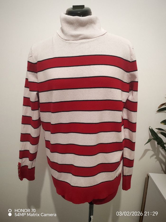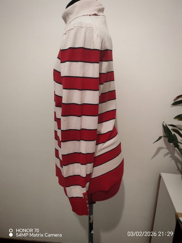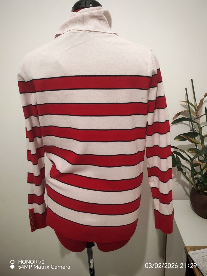 Intemporel A rayure et col roulé Boutons sur les poignets Largeur a plat sous les aisselles 51 cm Matiere extensible En coton mélangé Longueur totale 64cm #geliscyrilletaille40 #geliscyrilletailleL Reg2CA8