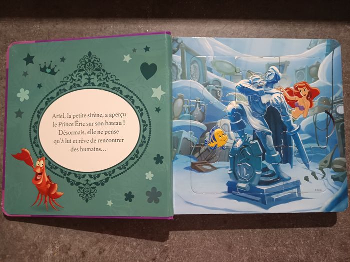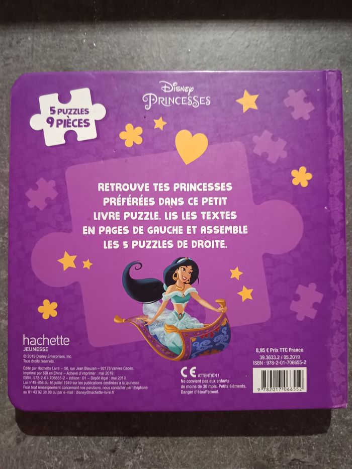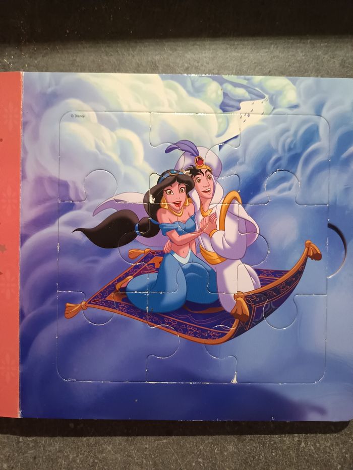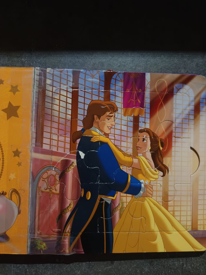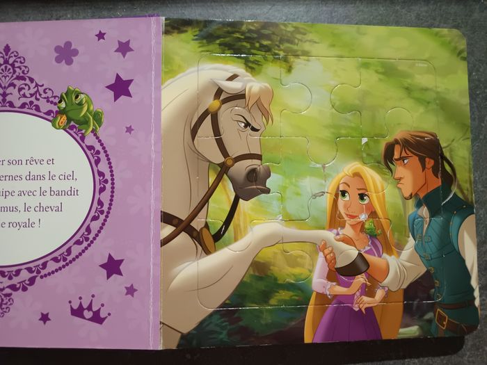 Livre avec 5 puzzles Disney princesses Bon état (défauts à voir sur les photos) La page du puzzle la belle et la bête est scotchée.