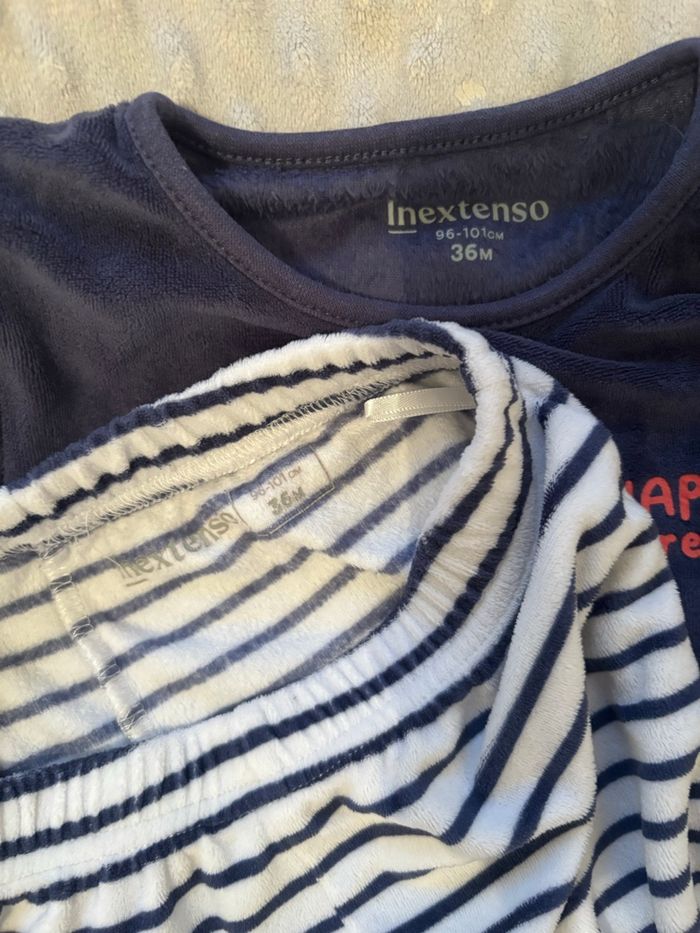 Lot de deux pyjamas deux pièces hiver Aucunes taches, aucuns trous Taille 36 mois - 96-101 cm Très bon état In Extenso
