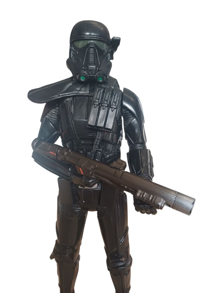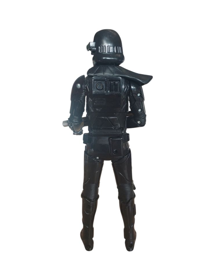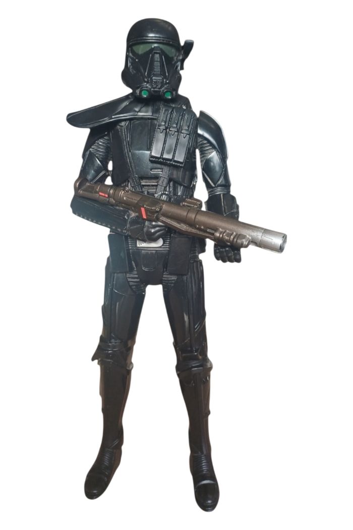 Vends figurine Death Trooper issue de l'univers Star Wars. Ces soldats d'élite de l'Intelligence Impériale sont reconnaissables à leur armure noire sinistre et leur allure longiligne. ​Détails du personnage : Équipé de son armure complète, de son épaulière de grade et de son fusil blaster (E-11D). ​État : Très bon état général ​Accessoires : Vendu avec son arme d'origine. ​Taille : 30cm ​Parfait pour compléter une collection de Stormtroopers ou pour un fan de Rogue One et The Mandalorian.