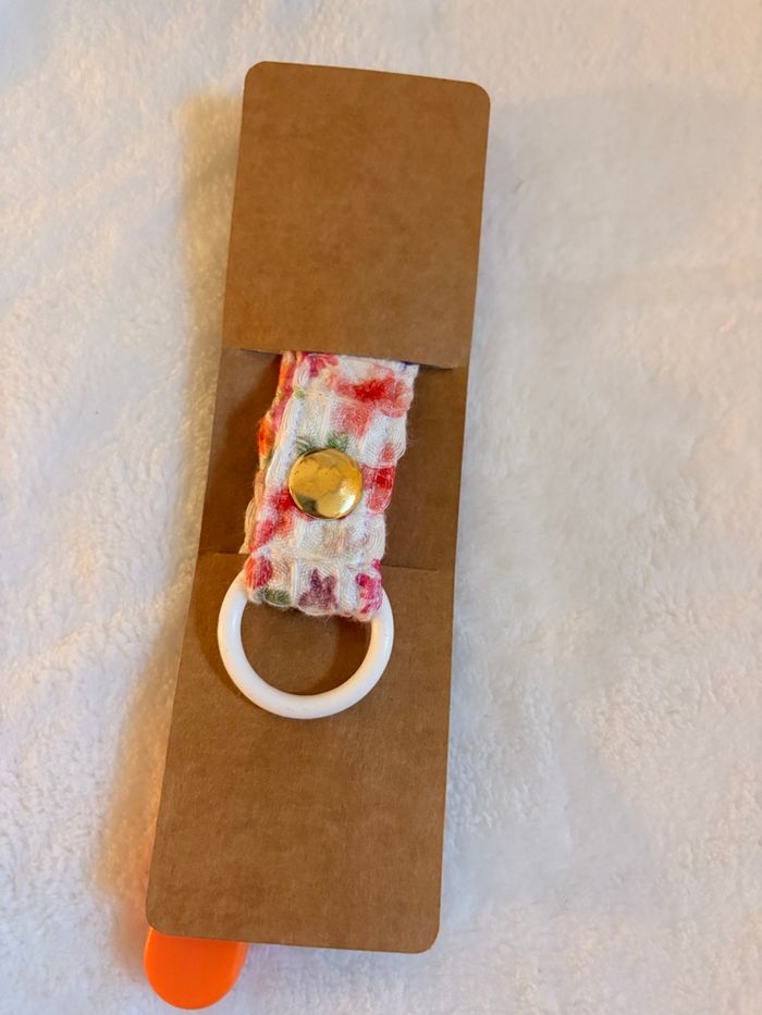 Attache tétine universelle S’adapte à toutes les marques de tétines (Mam, nuk, suavinex…). L’anneau en silicone amovible permet son attache facile à toute sorte de tétine. Il se retire facilement lors du nettoyage. Possibilité d’en faire sur commande avec d’autre tissu. Réalisation et envoi rapide