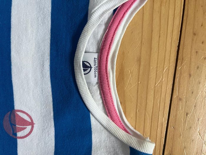 Tee-shirt blanc et bleu Petit Bateau 4 ans - photo numéro 1