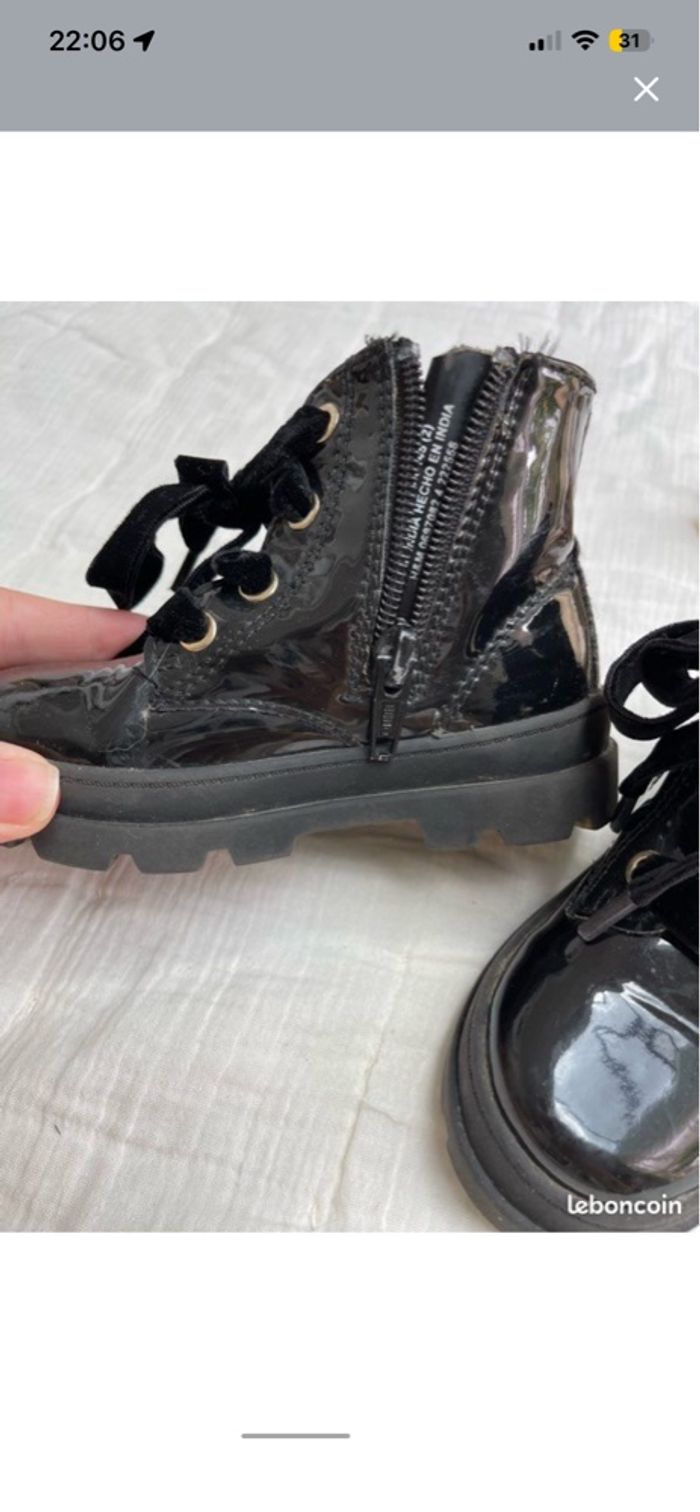 Bottines noir vernis à lacet - H&M - Taille 23  - photo numéro 1