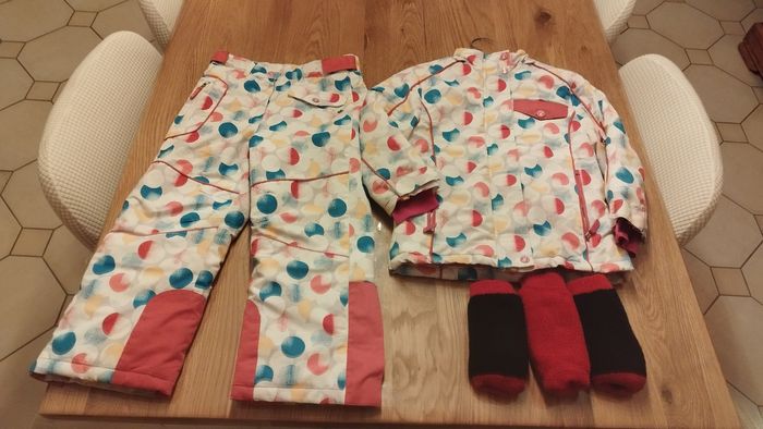 Blouson de ski Pantalon de ski ( ya plus les bretelles) légèrement abîmé sur le bas voir photo 3 paires de chaussettes