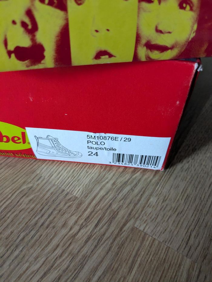 Chaussure minibel pointure 24 taupe toile très bon état dans boite d’origine