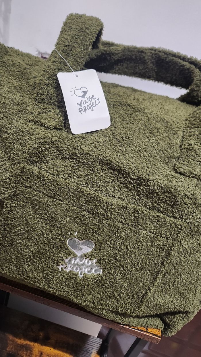 Sac cabas en tissu bouclette vert kaki – Neuf avec étiquette