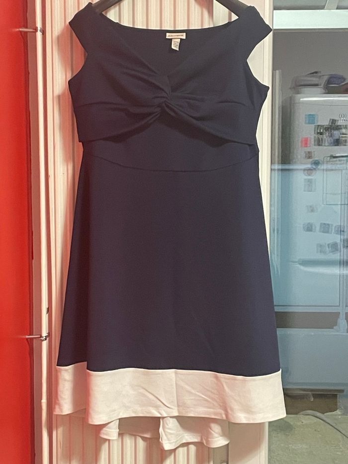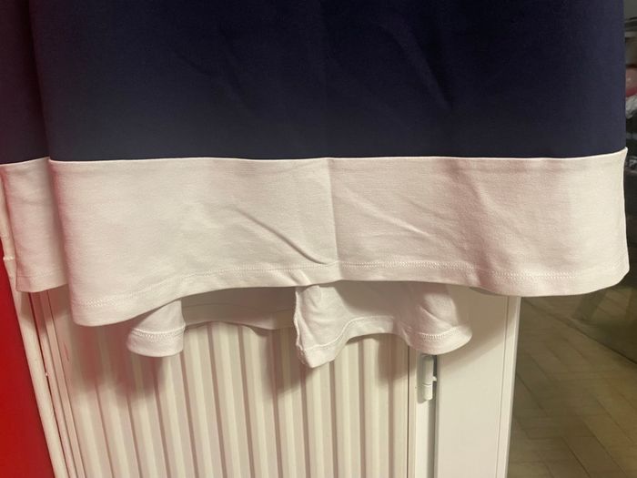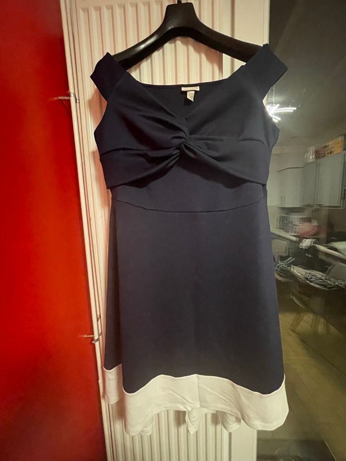 💙 Élégante robe midi asymétrique bonprix, bleu marine, taille 46/48 ✨ Col bardot flatteur, joli noeud sur la poitrine 🤍 Bas contrastant avec une bande blanche pour une touche chic 🧵 Tissu épais pour un tombé impeccable, portée 1 seule fois 🎉 Idéale pour une cérémonie ou une occasion habillée 📌 État excellent, avec toutes ses étiquettes (marque, taille, lavage) #robehabillee #robe46 #robemarine #colbardot #robeelegante
