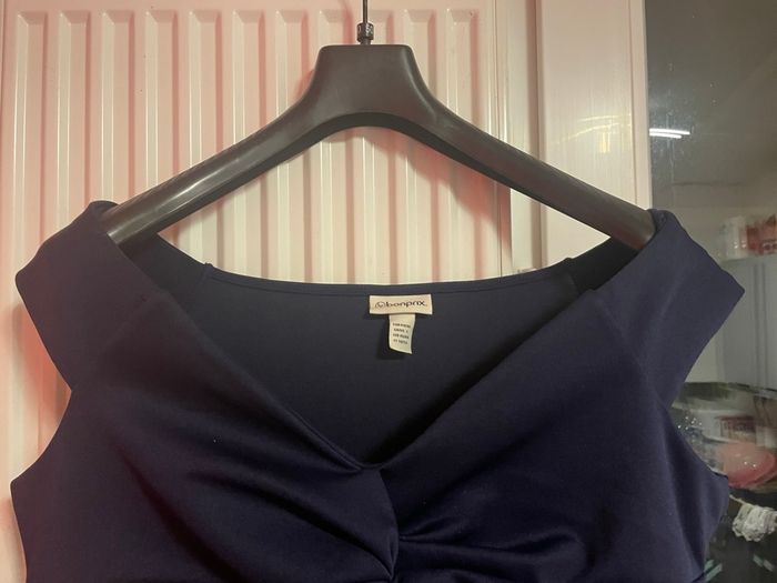 Robe bleu marine bonprix col bardot noeud poitrine T46/48  - photo numéro 6