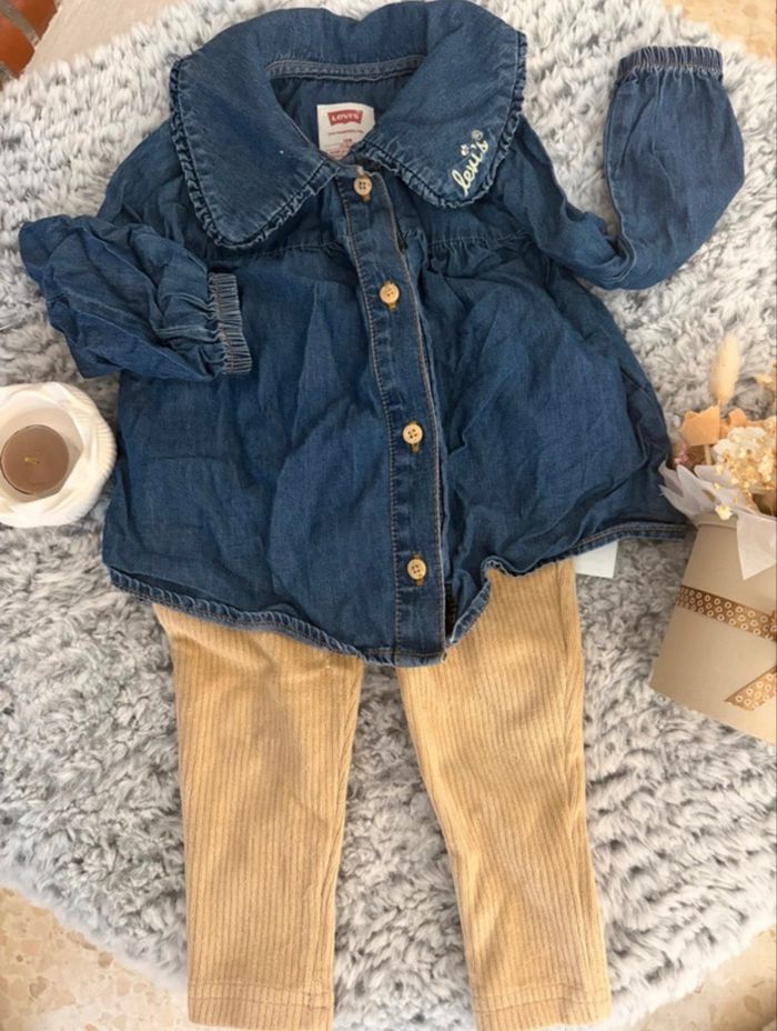 Ensemble Levi’s bébé Très bon état Taille : 12 mois Petite chemise en jean avec la marque brodée sur le col. Pantalon velours beige