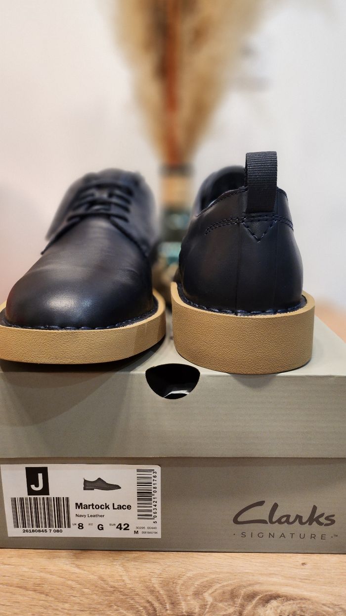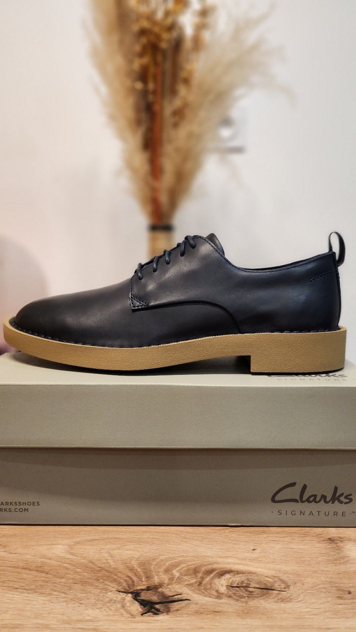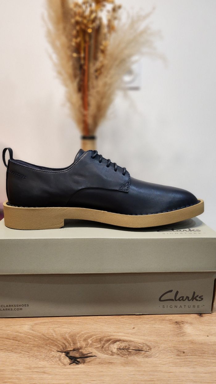 Vendeur pro Chaussures basses Clarks Signature en cuir marine, style derby. Semelle épaisse couleur beige très confortable, idéale pour un usage quotidien ou professionnel. ✔️ Cuir de qualité ✔️ Confort Clarks reconnu ✔️ Style élégant et moderne ✔️ En très bon état / peu portées (à ajuster si besoin) Conviennent aussi bien avec un pantalon habillé qu’un jean. Vendues avec la boîte d’origine. Envoi rapide et soigné possible. Facture à votre nom sur demande. N’hésitez pas à visiter mon profil pour un achat groupé ou demander plus de photos.