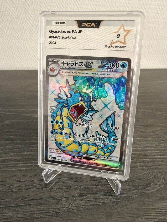Carte Pokémon Léviator ex (Gyarados ex) japonaise, numérotée 091/078, issue de la série Scarlet ex (2023). 🟢 Carte gradée PCA – note 9 proche du neuf, comme indiqué sur la slab 🟢 Très bel état général : excellente présentation, surface propre, bords et coins nets 🟢 Carte protégée sous boîtier rigide PCA, idéale pour collection ou investissement Léviator est l’un des Pokémon les plus emblématiques de la licence, et cette version ex Full Art japonaise est très appréciée pour son artwork dynamique et sa forte présence visuelle. 📦 Envoi rapide, sécurisé et soigné 📸 Carte identique aux photos 💬 Disponible pour toute question ou demande de lot 👉 Une belle pièce pour collectionneur ou amateur de cartes japonaises