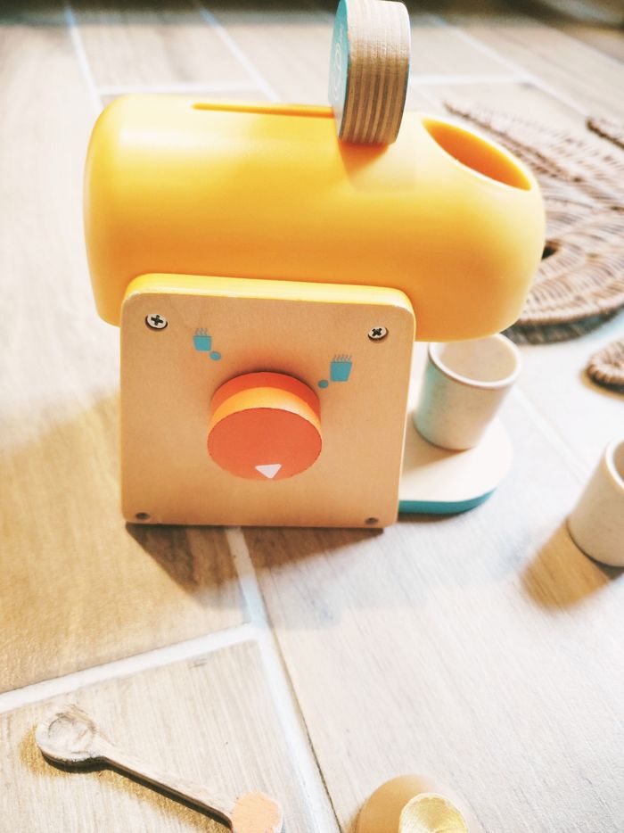 🎀 Offrez à votre enfant ses premiers moments de "barista" avec cette magnifique machine à café en bois au design moderne et chaleureux. Un jouet d'imitation parfait pour stimuler l'imagination et la motricité fine