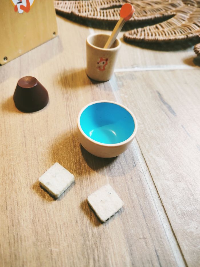 ✨Service avec tasses illustrées, cuillères, sucrier avec sucres en feutrine, dosettes,