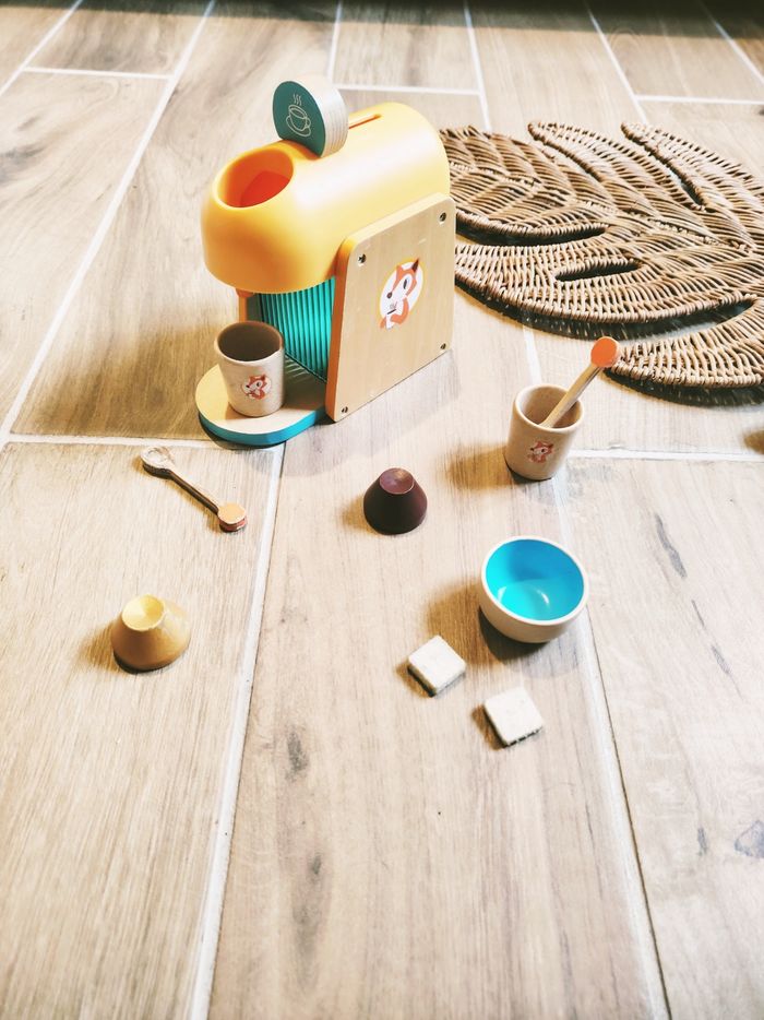 ☕Jeu d'imitation - Dinette en bois -Cafetière expresso /Machine à café avec accessoires - marque Djeco - JB1955