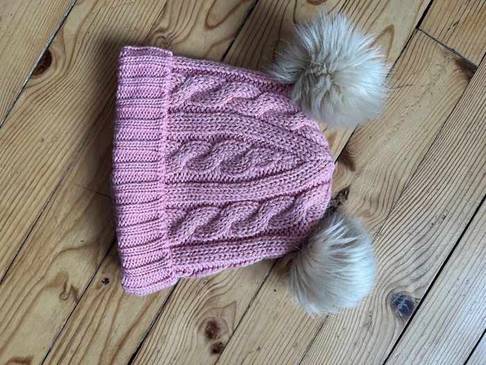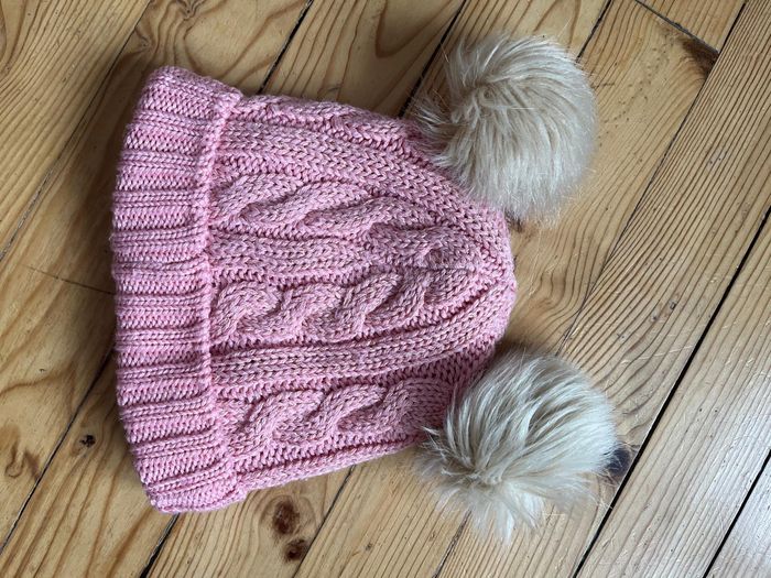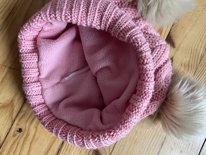 Bonnet rose doublé polaire, avec 2 pompons blancs Très bon état Étiqueté coupée, c'est un 53 cm